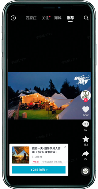 短視頻、直播手段,以?xún)热莘N草、團購下單再前往店鋪消費打卡,抖音生活服務(wù)基于豐富多元的興趣生態(tài)與短鏈路的交易模式。